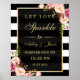 Poster Sinal de Casamento de Stripes Florais Douradas do