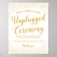 Sinal de casamento da Cerimônia desplugada no tema do confete de ouro. Excelente para muitas outras ocasiões como festas de noivado, chás de panela, chás de fraldas. PERSONALIZE ESTA IMPRESSÃO Personalize esta impressão para corresponder ao seu tema de cor de casamento. A cor de fundo pode ser alterada com a ferramenta online de opções de cor de fundo zazzle. Para um olhar coeso, visite minha loja para ver as coleções dos nossos sinais de casamento confetti.