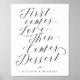 Símbolo de Casamento da Caligrafia Elegante - Primeiro vem o amor, depois vem a sobremesa - o símbolo do bar da sobremesa em lindas letras de rico fluentes e seu texto personalizado. Um na moda, mas simples, design formal em preto e branco ou qualquer cor de fundo que você escolher. Basta clicar no link personalizar mais, mostrado na área de personalização de texto à direita, e escolher seu fundo de cor personalizado. Este poster de placa faz com que seja rápido e fácil criar acréscimos incríveis à decoração do casamento. Os sinais podem ser ampliados, há muitos tamanhos a serem escolhidos, assim como opções para enquadramento e correspondência personalizados. sinalização personalizada de casamento. ~ Verifique meu compro ou coleção abaixo para ver mais sinais complementares do seu casamento