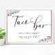 Placa de casamento do bar do Taco 8x10- simplesmente design preto e branco com letra de caligrafia. Use o quadro horizontal e aproveite a festa!