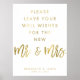 Dourado e branco Por favor, deixe seu sinal de recepção de casamento de Desejo (poster) com efeito de folha de ouro (faux, impresso como uma imagem) e texto personalizável - você pode adicionar o nome da noiva e do noivo e a data do casamento. As dimensões do impressão de sinal (poster) são de 18 por 24 polegadas.