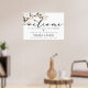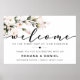 Simples e elegante moderno com caligrafia "bem-vinda" e sinal de casamento de flores florais cor-de-rosa.