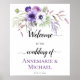 Poster Sinal de Casamento Floral Branco Lavanda Roxo