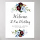 Poster Sinal de casamento floral de Burgundy azul Dusty