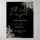 Poster Sinal de casamento floral de rosas góticas preto e