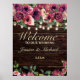 Banner / sinal de boas-vindas com um design de madeira de celeiro rústico com luzes de cordas e floral de cor d'água burgundy e uma letra elegante. Excelente para um casamento ao estilo celeiro ou country. Entre em contato conosco para obter ajuda sobre a personalização ou produtos correspondentes.