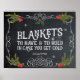 Um cartaz de natal/feriado/inverno, caracterizado por um fundo de efeito de quadro, com panos de pínus, sagrados e bagas para o seu casamento ou festa com a menção da tipografia "cobertores, para ter e segurar no caso de ficar frio". Você pode editar os nomes e o campo de data na parte inferior ou excluí-lo se não for necessário.