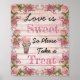 Coral cor-de-rosa-rosa rosa de madeira floral angustiada "Love is Sweet, so Take a Tratat" Sinal de Casamento para Candy Buffet, Pink & Butterflies para um bar doce em um casamento ou chá de fraldas.