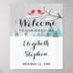 Cena de Neve de Inverno Elegante Terra da Fantasia com Cartaz de Sinal de Casamento de Rena e Pássaro Cardinal Vermelho.