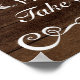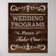 Sinal de programa de cerimônia rústica com padrão de fundo em madeira.