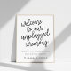 Planejar uma cerimônia desconectada, mas não sei que texto usar para que seus convidados saibam guardar seus telefones? Este poster de chic cuida disso em seu estilo. O Elegante e moderno design preto e branco apresenta "bem-vindo à nossa cerimônia desconectada" em tipografia de script de estilo manuscrito com seus nomes e mensagem personalizada abaixo. Mostrado com "por favor guarde seus telefones e câmeras até depois da cerimônia."