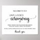 Esta simples placa de caligrafia negra "cerimônia desconectada" é perfeita para um casamento rústico. A design minimalista apresenta uma elegante letra de escrita de pincel e um adorável coração feminino. Personalize o sinal com seu próprio texto, se quiser!