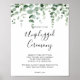 Este sinal de cerimônia desplugada de eucalipto minimalista é perfeito para um simples casamento ou chá de panela. A design apresenta galhos e folhas botânicas elegantes e desenhadas a aquarela e desenhadas à mão.