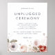 Este simples sinal de cerimônia floral desplugada é perfeito para um casamento rústico. O design bicho-branco apresenta flores rosadas, rosas, burgundy e marsala rochosas e roxas rústicas.