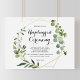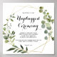 Este símbolo de cerimônia desplugada tropical de ouro geométrico é perfeito para um simples casamento ou chá de panela. A design apresenta lindas folhas verdes pintadas à mão, enfeitando um quadro geométrico dourado.