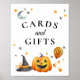 Um pequeno cartaz de chá de fraldas de abóbora de Halloween e sinal de presentes. Design moderno do Halloween para uma festa de dois! Este poster chá de fraldas apresenta uma abóbora, um chapéu de bruxa, um balão, cornas doces e estrelas. Esta poster é excelente para filhinhas e chás de meninos!