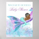 Chá de fraldas de Sereia com adorável menina africana sereia e coroa de sereia em um belo fundo do mar. Este sinal de boas-vindas ao chá de fraldas de sereia é facilmente personalizado com o texto de sua escolha.