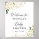 Rosas Brancas Florais Douradas Folhas Chá de panela Sinal de Boas-vindas Poster.