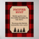 Sinal PACIFIER HUNT com um design de lumberjack vermelho. Perfeito para o seu chá de fraldas temático lenhador.
