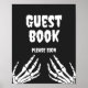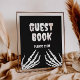 Apresentando nosso Sinal de Chá de fraldas de Halloween. Este sinal é perfeito para o seu tema chá de fraldas gótico, chá de fraldas do crânio ou chá de fraldas de Halloween. Com a sua intrincada design com elementos do crânio e do esqueleto, ele adiciona um toque de elegância assustadora ao seu evento. O sinal também é adequado para chás de fraldas de outono e outono, complementando o ambiente sazonal. As mãos do esqueleto e os elementos do Dia dos Mortos o tornam ainda mais único e cativante. Use esta placa para direcionar seus convidados para a área do livro de hóspedes, encorajando-os a deixar mensagens sinceras e desejos de felicidade para os pais a serem. Melhore a atmosfera do seu chá de fraldas com este Sinal de Livro de Halloween, que cria memórias duradouras para a nova família.