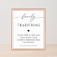 Encoraje seus hóspedes a compartilhar suas tradições familiares favoritas com este sinal de poster, que contém um roteiro moderno, coração e texto editável. Personalize-o facilmente clicando na opção "personalizar".