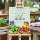 Bem-vindos aos seus convidados a um encantador Chá de fraldas "Locally Grown" com este adorável símbolo do mercado de fazendeiros! Perfeito para uma comemoração neutra em termos de gênero, este cartaz apresenta um cenário caloroso de gingham verde, evocando uma sensação acolhedora de campo. Ilustrações de aquarelas pintadas à mão de vegetais frescos, um pote de mel de ouro e um belo boião de compota criam um toque quente e rústico. Os detalhes artísticos e os elementos naturais capturam lindamente a essência de um mercado de fazendeiros, fazer esse sinal de uma decoração ideal para um evento que comemora novos começos.
