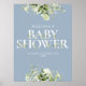 Poster Sinal de Chá de fraldas Floral Dusty Blue Greenery
