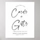 Guie convidados com simplicidade de chic usando este moderno sinal de Cartões e presentes preto e branco. Perfeito por colocar na sua mesa de boas-vindas ao chá de fraldas, este design minimalista adiciona um toque na moda, enquanto ajuda os hóspedes a saberem onde deixar as cartas e presentes pensados. Um sotaque limpo e eterno ideal para chás de fraldas com temas e neutros em termos de gênero.