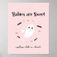 Bebês são doces, por favor, deem uma olhada. Sinal de favor para o Chá de fraldas do seu bu. Fundo cor-de-rosa com ilustrações bonitinhas de fantasmas e de Halloween