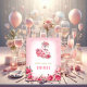 Este é o sinal de Drinks para o chá de fraldas. O design é um flamingo cor-de-rosa querido, bailarina, mãe e menina, com rosa rosa rosa rosa, flores florais na cabeça e um buquê de rosa maior ao lado dos corpos. Fundo cor-de-rosa macio com triângulos de ouro bonitos. Centro branco com flores rosas cor-de-rosa na borda inferior.