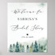 Sinal de Boas-Vindas de Chá de Noiva de Árvores de Pinheiro de Inverno.