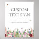 Feminino e moderno, este sinal de festa pode ser personalizado para o seu chá de noiva. O design apresenta um lindo jardim de flores cor-de-rosa e roxas em aquarela, incluindo rosas, tulipas, lavanda e folhagens de eucalipto com borboletas coloridas e abelhões voando ao redor.