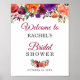 Poster Sinal de Chá de Noiva Floral Borgonha Rustic Bloom