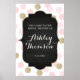 Adicione um toque especial à sua festa de chá de panela ou casamento com esta poster bolinhas. Apresenta alegria brilho dourado e bolinhas cor-de-rosa com as palavras "Bem-vindo ao Nosso Chá de panela". Personalize esta poster de casamento DIY com o nome da noiva e mostre-a como uma decoração no seu chá. Ou personalizá-lo para um chá de fraldas, festa de noivado ou o que quiser. Para ver os convites correspondentes e as etiquetas de favorecimento visite www.zazzle.com/vginvites