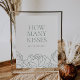 Perfeito para chás de panela de primavera ou jardim de verão, este elegante design de chá de panela de pedras florais apresenta uma fronteira de ilustrações poeirentas de esboços de flores verdes de peônias ao longo do fundo. "Quantos beijos estão no jarro" aparece em serif e letras itálicas clássicas. Enquadre esta placa 8x10 e coloque ao lado de uma jarra de beijos para um jogo de adivinhação de chá de panela divertido. Cartões de palpite correspondentes disponíveis na nossa coleção de Peony Garden.