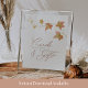 Guie os convidados com este elegante sinal "Cartões e presentes" com folhas de outono em tons de aquarela quente. Perfeito para um chá de panela de outono ou celebração de casamento rústica. Disponível impresso ou como download digital. Projetado por Redwood & Vine Design Co.