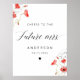 Elevem o vosso decor de chá de panela com a "Futura Sra." Sinal de Chá de panela Elegante para Caligrafia, graduado por belíssimas flores vermelhas pintadas à mão e caligrafia elegante, ideal para uma celebração de verão ou primavera. Este sinal de chá de casamento personalizável foi concebido para tornar o seu evento ainda mais exclusivo, pelo que se sinta à vontade se necessitar de assistência.
