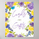 Guie seus hóspedes com elegância usando nossos cartões temáticos 'Love is in Bloom' e sinal de presentes! Apresentando flores pintadas à mão em lavanda vibrante, roxo, amarelo e tons azuis, esta placa adiciona um toque encantador à sua mesa de presentes. Com seu design de eterno e sua letra elegante, ele complementa lindamente seu decoro de casamento ou chá de panela enquanto garante que seus hóspedes saibam onde deixar seus desejos e presentes