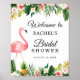 Cartaz de Sinal de Chuveiro de Noiva Floral Folhas Tropicais Flamingo.