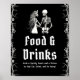 Poster Sinal de Comida e Bebidas do Esqueleto Gótico Negr