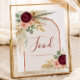 Direcione os convidados para o menu inspirado no outono com este sinal de mesa de comida de outono no Amor. Apresentando um buquê de cor de água sazonal de crisântemas de burlagem, rosas de escova, folhas de outono de ouro, capim de pampas, eucalipto de salva e penas de faisão rústicas, colocadas dentro de um arco de laranja de rajada de terracota sobre fundo branco. O texto personalizável permite descrever itens de menu, instruções de buffet ou notas dietéticas. Paira maravilhosamente com placas de coordenação, guardanapos, e decoração de mesa na coleção Fall in Love.