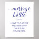 Peça gentilmente aos seus convidados para deixarem seus conselhos e votos com este sinal de confraternização de noiva "mensagens em uma garrafa" azul marinho. Em seguida, leia suas mensagens logo após sua confraternização ou casamento e lembre-se das memórias do seu dia especial! Parte da coleção Alejandra.
