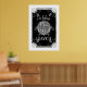 Este poster de parede tem um antigo cartaz da cozinha design com o ditado "On Today's Menu - Take it or Let It" (No menu de hoje - Pegue ou deixe"). Por trás disso está uma forma clássica de etiqueta em preto, estouro de cinza, pratos, pratos de prata e óculos. Um poster excelente para pendurar na parede em uma cozinha branca e preta.