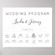 Elegante sinal de programa de casamento preto e branco apresenta ícones de casamento e tipografia moderna. Este sinal de programa de cerimônia é totalmente personalizável, para que você possa alterar o tamanho e a ordem dos ícones, todo o texto, cores e fundo para melhor combinar com o tema do seu casamento!