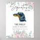 A bela placa de bebida com assinatura de cão Dachshund apresenta um belo design floral de animal de estimação em estilo aquarela- perfeito para um casamento saturado em tons neutros. É uma maneira atraente de soar o coquetel, a comida ou a mesa de sobremesa do seu evento! Personalize o sinal de bar de casamento com o nome do animal de estimação e beba detalhes.