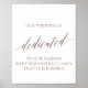 Este elegante sinal de dedicação à caligrafia rosa de ouro é perfeito para um casamento simples. A design cor-de-rosa-pincelada apresenta uma poster minimalista decorada com tipografia de folha de ouro rosa-falso romântica e caprichosa. Nota: Este design não apresenta folha de ouro rosa real. É um gráfico de alta qualidade feito para se parecer com folha de ouro rosa.