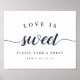 Convide os convidados a pegar alguns doces com o nosso encantador sinal de mesa de sobremesa de casamento. O sinal de mesa de sobremesa 8x10 apresenta "o amor é doce, por favor, dê uma olhada" em robusto roteiro de caligrafia azul de marinho e letra de bloco. Personalize com suas iniciais e data de casamento embaixo da inscrição.