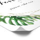 Este sinal de destino geométrico verde tropical é perfeito para um casamento simples ou chá de noiva. O design apresenta folhas de palmeira e banana verdes pintadas à mão em aquarela, elegantemente dispostas em lindos buquês, adornando uma moldura geométrica dourada.