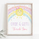 Este adorável design apresenta um sol com um arco-íris colorido pastel e um confete de brilho dourado sujo.