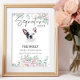 A bela placa de bebida de cachorro Bulldog Francês apresenta um belo design floral de estimação em estilo aquarela- perfeito para um casamento saturado em tons neutros. É uma maneira atraente de soar o coquetel, a comida ou a mesa de sobremesa do seu evento! Personalize o sinal de bar de casamento com o nome do animal de estimação e beba detalhes.
